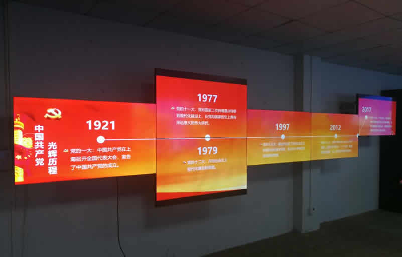 在過去,黨的重要信息宣傳,一般通過宣傳欄、海報、多媒體等媒介,而今最佳的宣傳媒介則是異形液晶拼接屏,在各級政府、相關(guān)部門、事業(yè)單位及國企等,都可以看到宣傳黨信息的展廳,通過異形液晶拼接屏可以更智能化、更清晰展現(xiàn),因為大面積的展現(xiàn)并不合適,對人們的觀看視線產(chǎn)生一定的影響,采用不規(guī)則的形狀拼接才能達到更好的觀看效果。