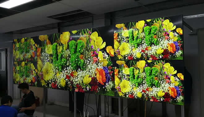 這種安裝方式是貼墻安裝,優(yōu)點(diǎn):占用空間小,一般適宜空間小、拼接數(shù)量小的情況,更顯得美觀大方。主要操作方式是用膨脹螺絲現(xiàn)在把支架固定在墻壁上,再把液晶拼接屏掛到支架上。安裝方便快捷,如果拼接屏數(shù)量多,需要考慮墻體的承重能力。缺點(diǎn):后期維護(hù)相對不太方便。